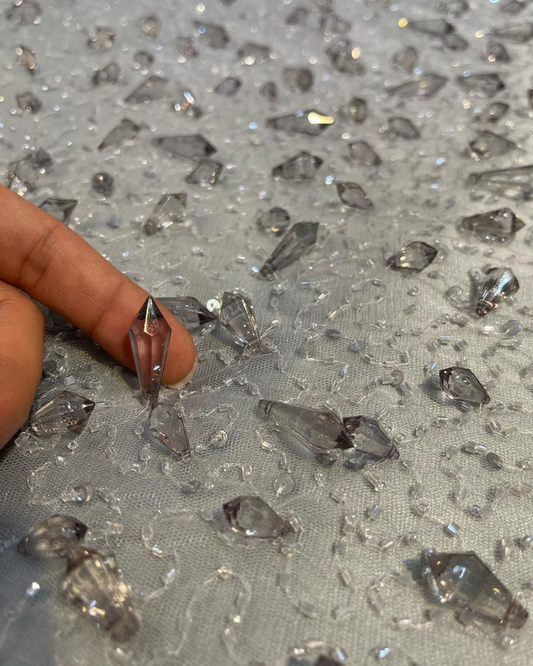 Luxury Sheer Crystal Fabric – Handcrafted Elegance with Sparkling Icicle Embellishments for Bridal and Couture Fashion