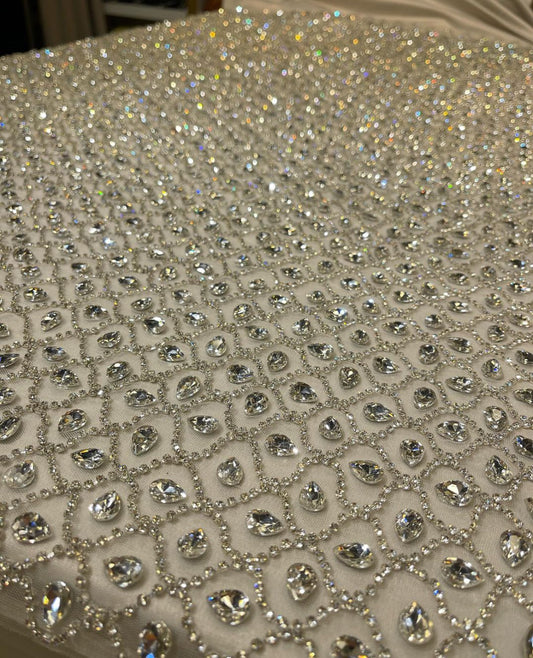 Radiance: Handcrafted Rhinestone and Bead Fabric for Couture Excellence