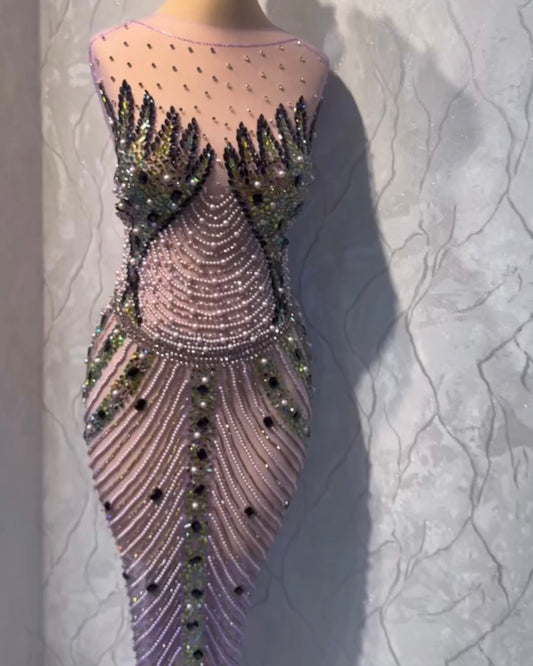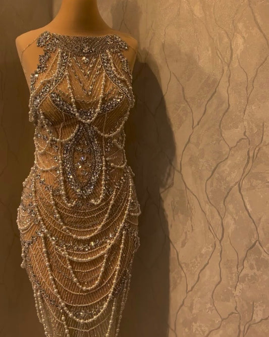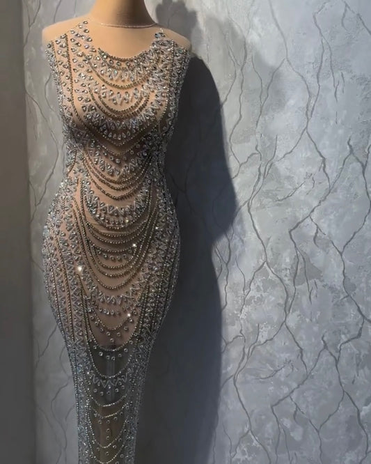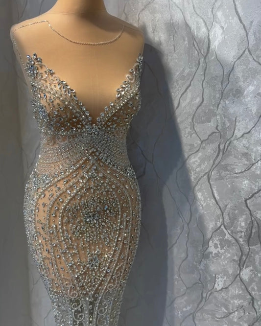 Crystal Elegance Sheer Gown β Dazzling Handcrafted Masterpiece